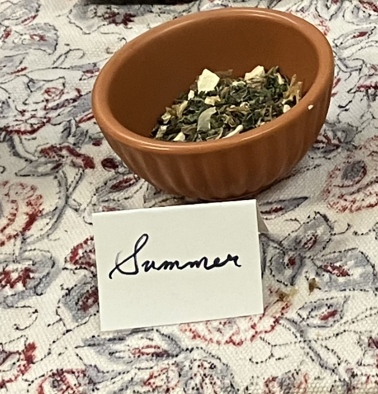 Summer is aligned with the element of Fire. You are likely highly ambitious and charismatic with a fiery streak. The Summer herbal blend is made with cooling, refreshing organic herbs to balance your fire and find your chill.